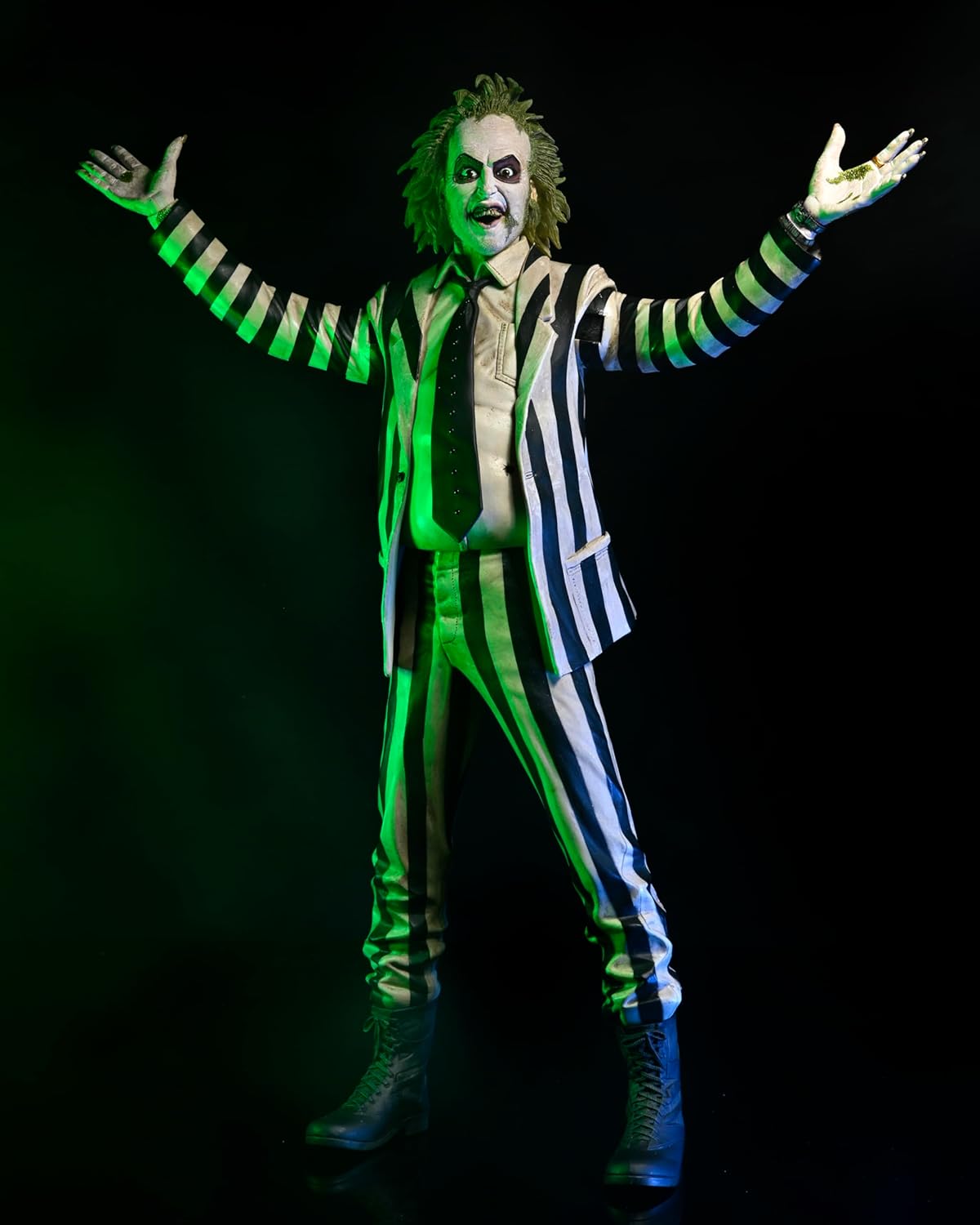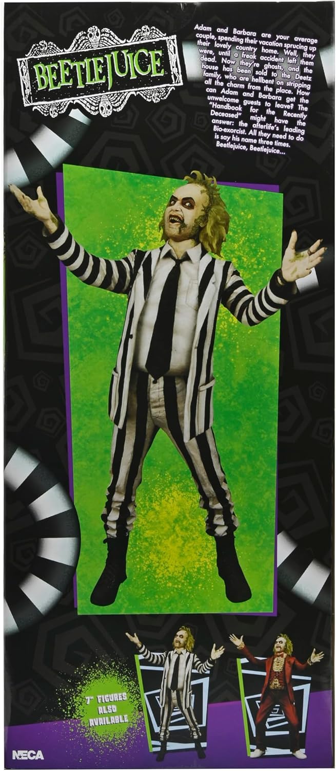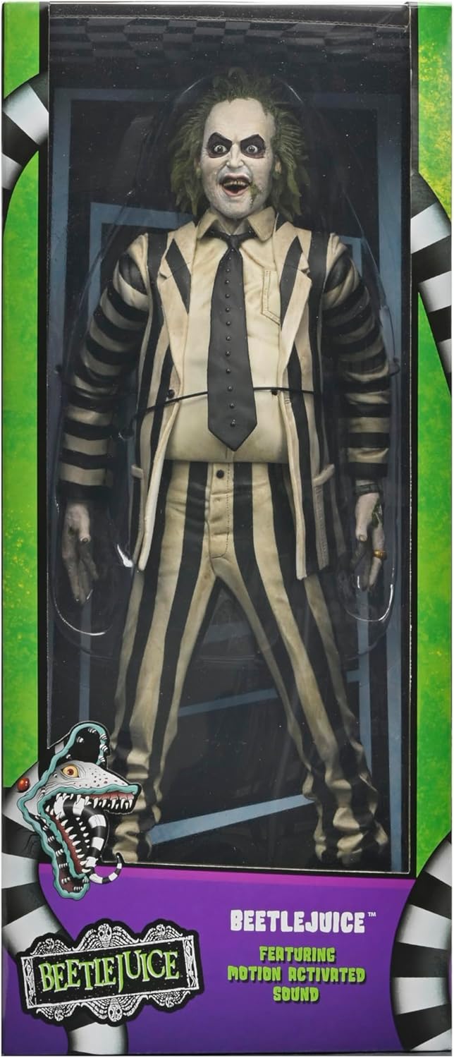 Direttamente dallโindimenticabile film di Tim Burton del 1988, ecco lโaction figure in scala 1/4 di Beetlejuice! Vestito del classico costume (in stoffa) a righe bianche e nere, Beetlejuice รจ perfetto in ogni dettaglio e parla: puรฒ pronunciare alcune frasi tratte dal film! Da non perdere!