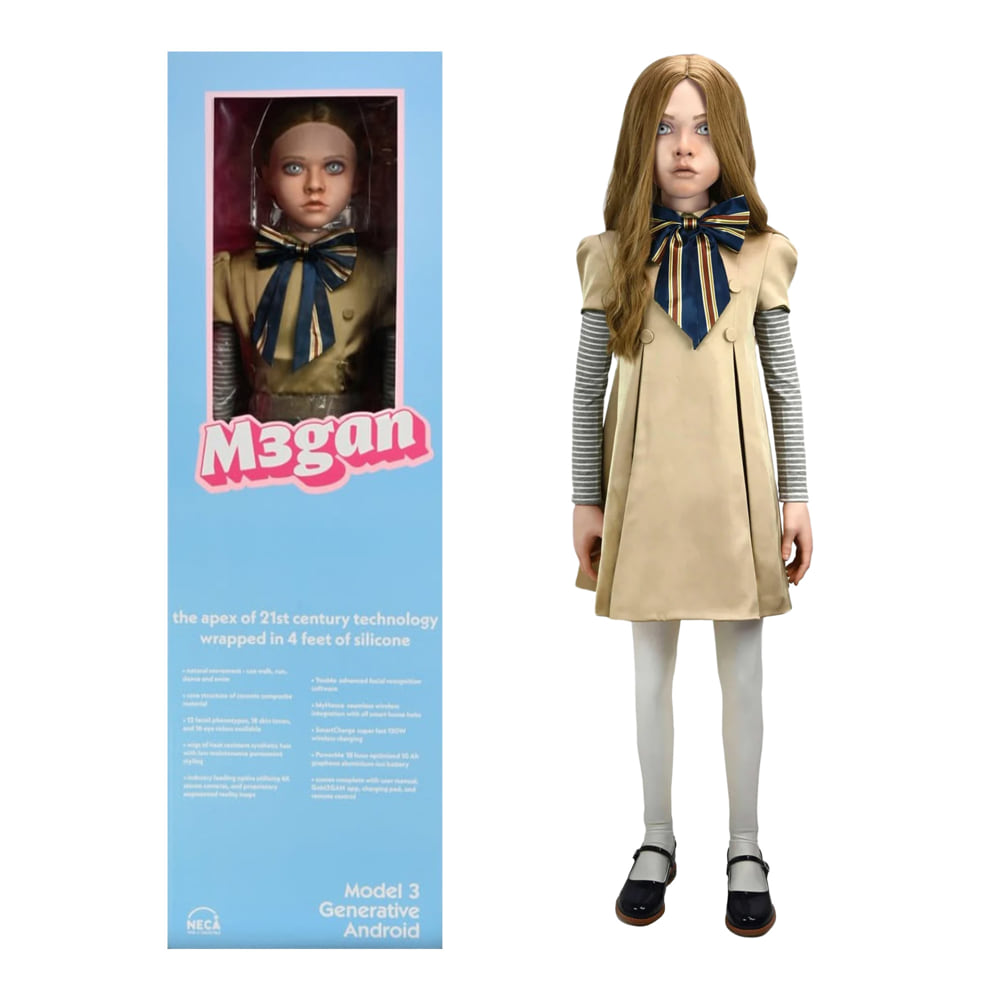 Su licenza ufficiale dal mondo cinematografico horror per linea Neca arriva la nuova, terribile M3GAN Lifesize Prop replica!L’Androide generativo Model 3 (M3GAN) è stato progettato per essere il più grande alleato dei genitori, programmato per essere il migliore amico dei nostri figli. Ma una bambola autocosciente con una vita propria può portare a conseguenze davvero sinistre! Alta circa 140 cm e replicata in scala 1:1 da file digitali reali utilizzati su pellicola. Ha un’anima interna articolata, occhi mobili e capelli sintetici (abbinati a campioni di capelli utilizzati sullo schermo). Il suo abbigliamento è realizzato con gli stessi campioni di stoffa utilizzati per i modelli del film e comprende un vestito con fodera interna, due maniche a righe, un papillon, biancheria intima, dei collant e un paio di scarpe.