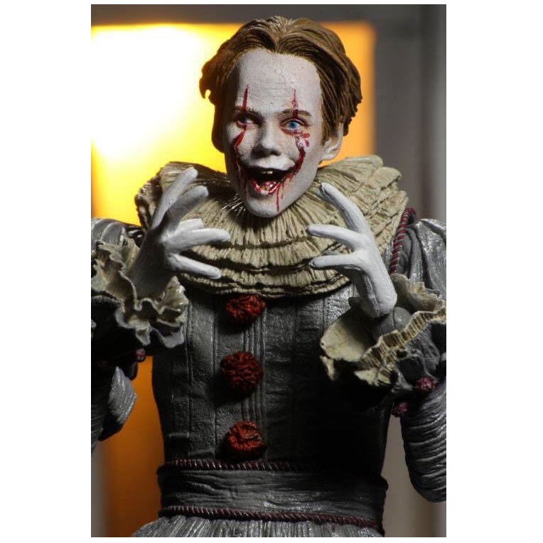 Dal nuovo IT: Chapter Two, il clown da incubo ritorna! Sono passati 27 anni e il Losers Club deve trovare un modo per sconfiggerlo una volta per tutte. Basato sul ritratto di Bill Skarsgรฅrd della creatura mutaforma, questo 7? la figura in scala presenta un corpo completamente nuovo per mostrare il cambio di costume di Pennywise nel secondo film. Per ricreare le scene piรน terrificanti del film, la figura completamente articolata ha quattro teste intercambiabili, piรน mani intercambiabili e palloncino rosso. Viene fornito in una confezione da finestra deluxe per collezionisti con patta apribile.
