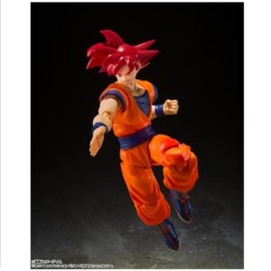 Da “Dragon Ball Super” arriva una action figure di S.H.Figuarts del Super Saiyan God Super Saiyan Son Goku! L’iconica uniforme arancione di Goku presenta il kanji del suo nome per abbinarsi al suo aspetto anime, e i suoi capelli hanno un rivestimento perlato per ricreare la sua aura Saiyan. Viene fornito con tre espressioni opzionali, oltre a molte mani in modo da poterlo posare mentre carica la sua Kamehameha o ricreare altre pose di battaglia.