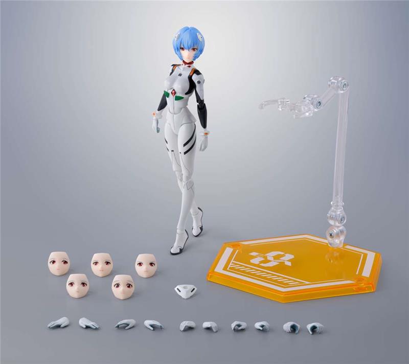 In occasione del 30ยบ anniversario della serie TV, Asuka e Rei di “Evangelion: New The Movie” diventano personaggi S.H.Figuarts nella loro classica plug suit! Ogni figura include parti intercambiabili per il viso, che permettono di ricreare diverse scene modificando le espressioni facciali. Inoltre, viene fornito un piedistallo esagonale dedicato, progettato per esporre facilmente insieme le due figure di Rei e Asuka (vendute separatamente). La struttura articolata รจ stata pensata per consentire pose flessibili: pur mantenendo una silhouette armoniosa, รจ possibile posizionare la figura con il petto inarcato e la vita ruotata.