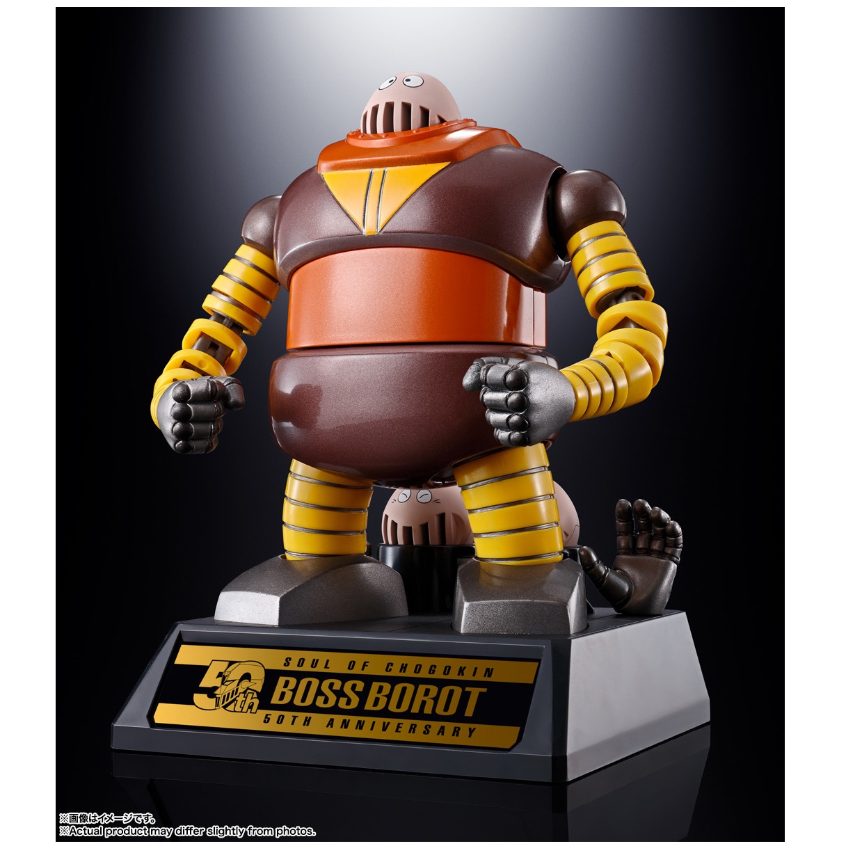 Nuovissima edizione per questo classico robot tratto dall`universo di Go Nagai! Questa versione di Boss Borot arriva in occasione del cinquantesimo anniversario di Mazinga Z.Si tratta di un`edizione riveduta e corretta del classico Chogokin, con parti in metalo piรน numerose, extra teste inedite ed il solito quantitativo di extra parti intercambiabili.