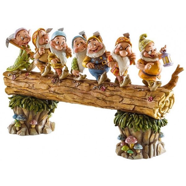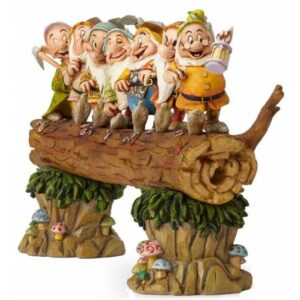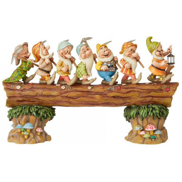 Sul cammino di ritorno. Fantastica composizione in un pezzo unico Disney Traditions immaginata da Jim Shore. Raffigura i 7 nani sul cammino del ritorno e sembra quasi sentirli cantare. Altezza : 20 cm Lunghezza : 33 cm Statuetta in resina Dipinta a mano con effetto legno Designer : Jim Shore