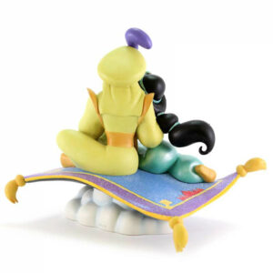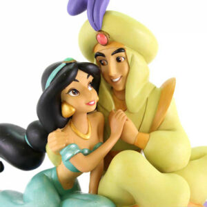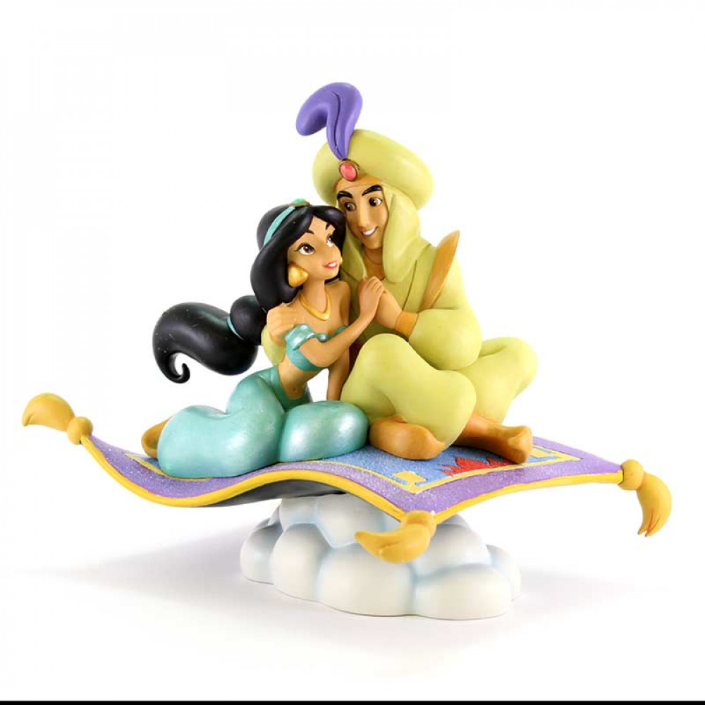 ConfrontaStupenda raffigurazione di Aladino e Jasmine sul tappeto volante. Realizzata in resina dipinta a mano, collezione Walt Disney, linea Haute Couture.